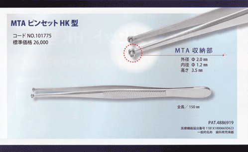 歯根端切除後の逆根管充填器『MTAピンセットHK型』のご案内させて頂きます。